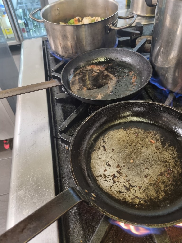 Large, heavy based frying pan