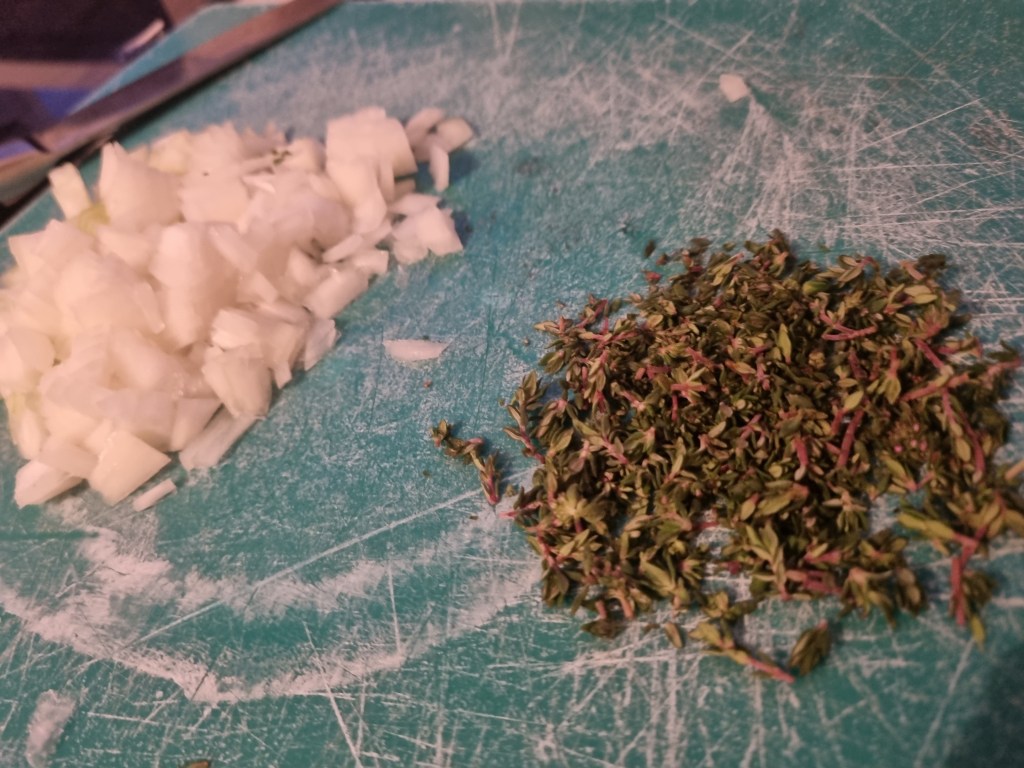 Finely dice your onion, bring your frying pan up to a medium heat, then apply some oil, and the diced onion.