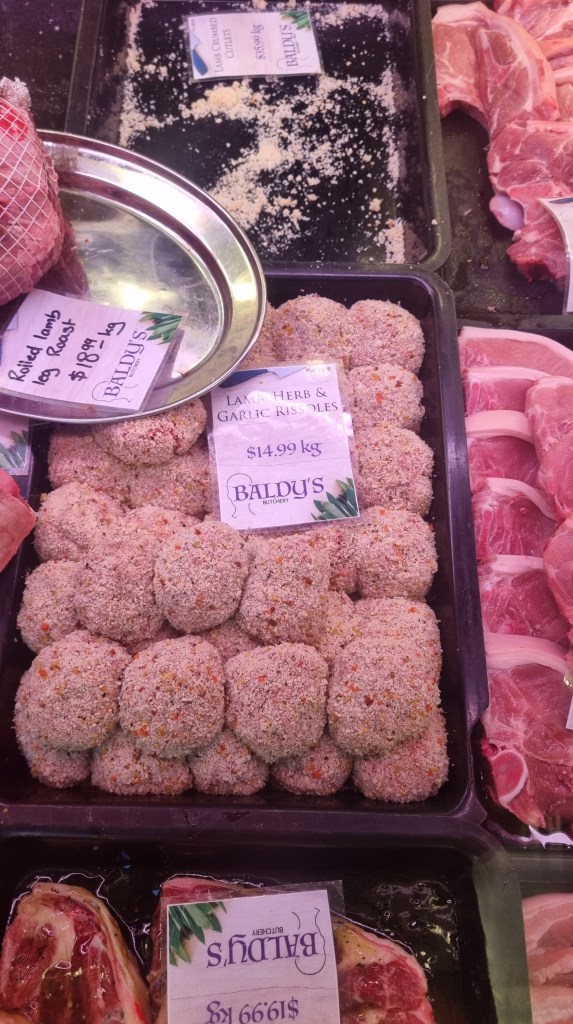 Yeah, that’s right. Rissoles. We do rissoles on a stick, and such a name is way more reflective of our culture here in Tasmania than the more commonly used name Kofta.