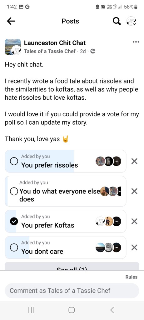 After publishing this story, I shared it amongst numerous online media circles in order to help promote it, but also to get further feedback on what people realy think of rissoles, in comparison to koftas, and to find out why people do veiw them with disdain in some circles.