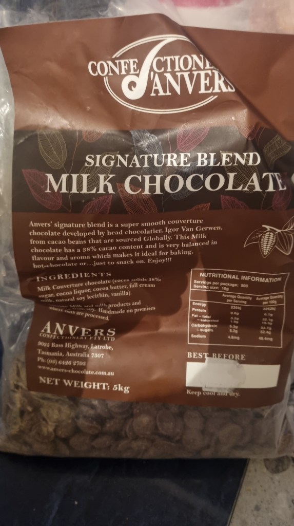 Anvers chocolate factory, situated around 45 minutes drive from Launceston in Tasmania’s north, is my favoured cooking chocolate if I want to play with chocolate from home state.