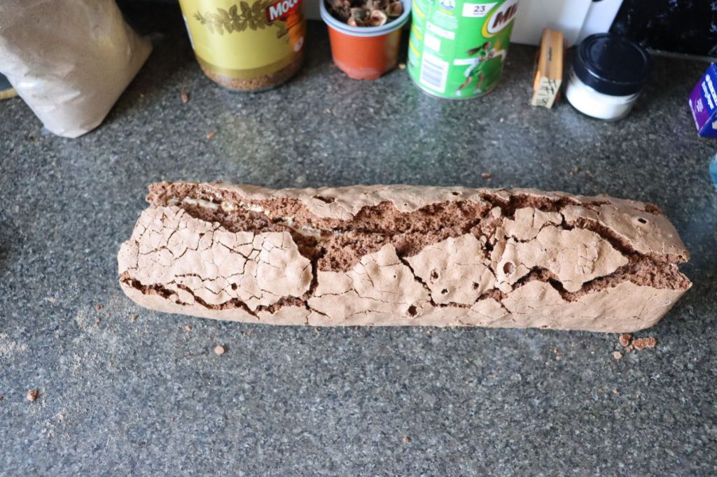 Prepare the attached chocolate sponge cake in a flat cookie tray, roughly 30cm x 15cm in diameter, being 1 to 2 deep.