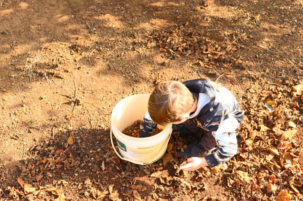 We met a few of the folks on site, I got my lad a couple of chocolate coated samples, then we headed into the orchard with a 10 litre relish bucket I got from work to stock up on freshly fallen Hazelnuts.