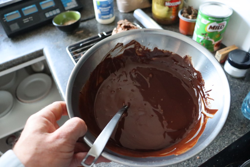 #Pro tip: Melt your chocolate before adding your butter. I used to put my chocolate and butter into my boiler together, as it was less likely to split, i found. Yet after having a chin wag many moons ago with a French pastry chef, he informed me that one loses a bit of the end creaminess if you let you butter split. Take the time and stir your chocolate until it melts before adding other ingredients, you will not be disappointed.