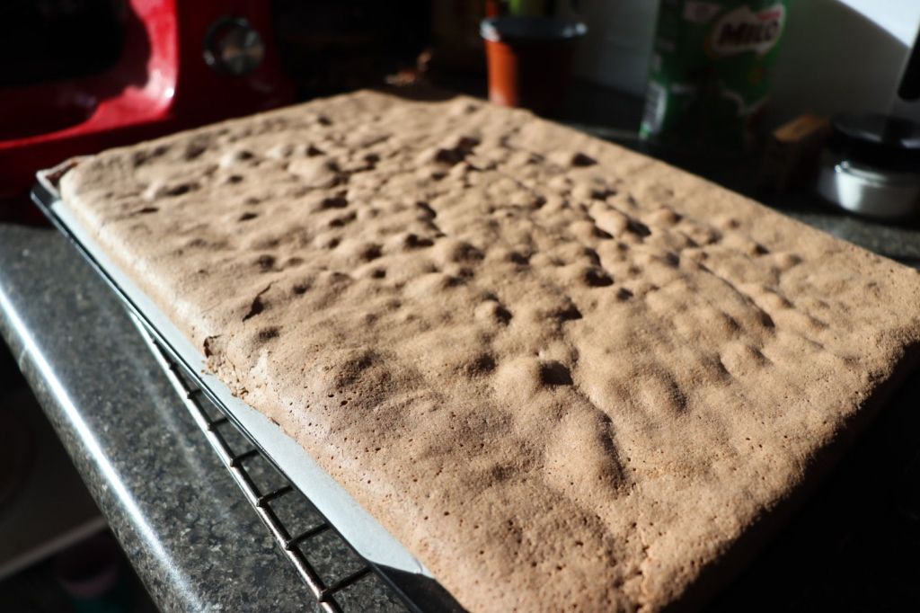 Place you cake tray into the oven and bake for 25-30 minutes, until a skewer can be pulled out clean, and warm.