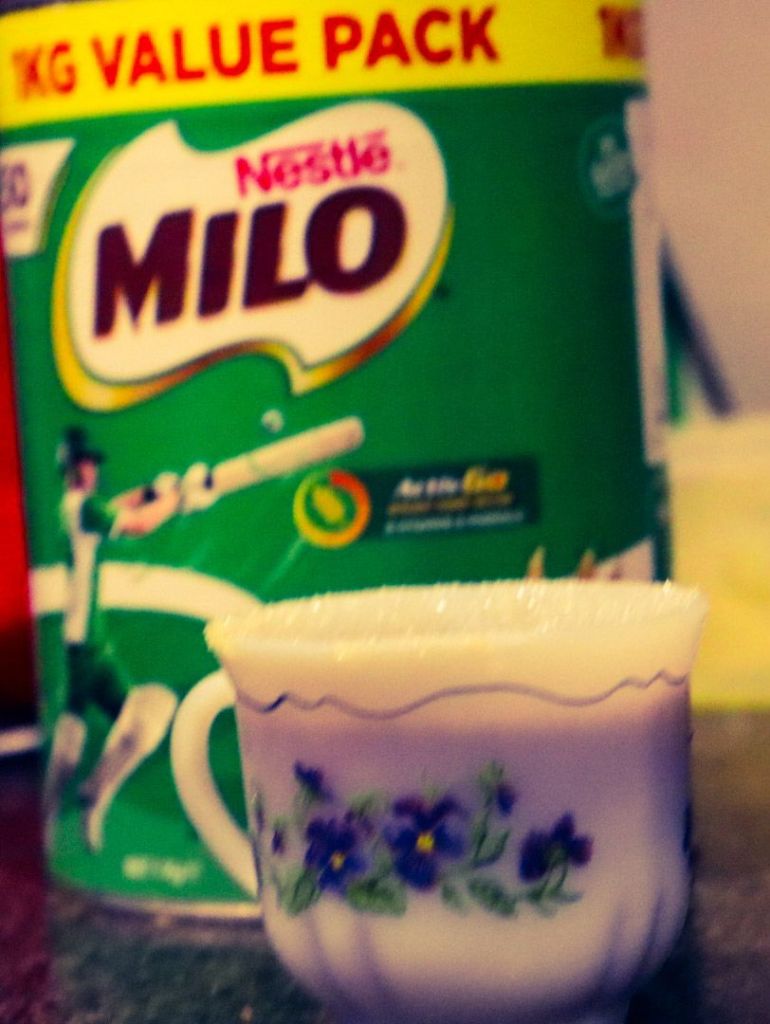 Once butter is fully homogenised into the melted chocolate, add Milo and stir through.