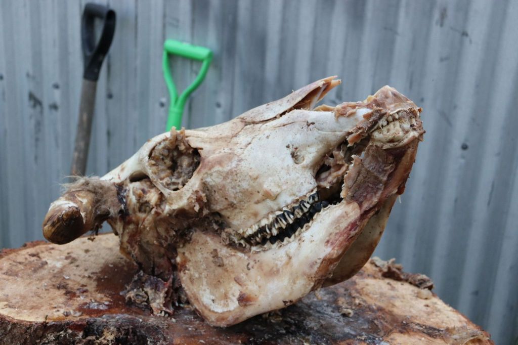 The following day, I removed the skull from the pot, scrapped away as much matter as possible, and chucked the skull under a bush, we’ll hidden from any noosy neighbours.